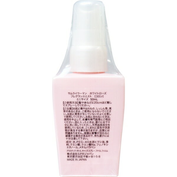 株式会社SPRジャパン個装サイズ:43X105X28mm個装重量:約73g内容量:50mLケースサイズ:35.3X12.5X18.5cmケース重量:約3.7kg製造国:日本【発売元:SPRジャパン】【商品区分:化粧品】【成分】水、PEG-40水添ヒマシ油、香料、クエン酸、クエン酸Na、フェノキシエタノール、メチルパラベン【使用方法】髪や体などに20cmほど離してスプレーしてください。