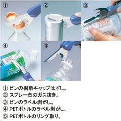 ペットボトル・スプレー缶の処分用やおきリサイクルツールハイ!環良!!ビンの樹脂キャップはずしスプレー缶のガス抜きビンのラベル剥がしPETボトルのラベル剥がしPETボトルのリング取り分別 はさみ 大掃除 工具