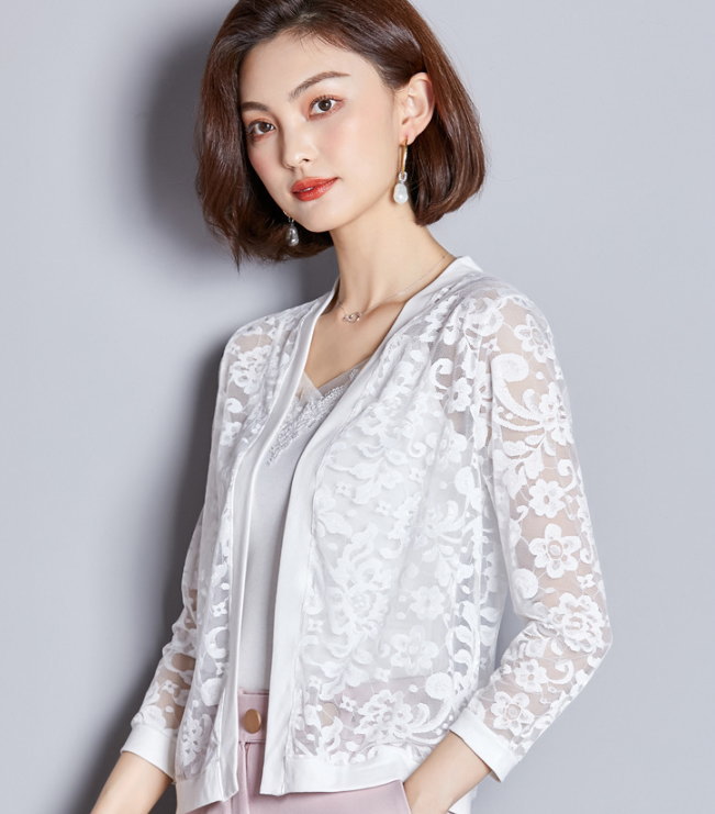 カーディガン ボレロ レース カーデ トップス 花柄レース 無地 シンプル 長袖 アウター 春夏 レディース メール便送料無料おうちコーデ (アパレル)