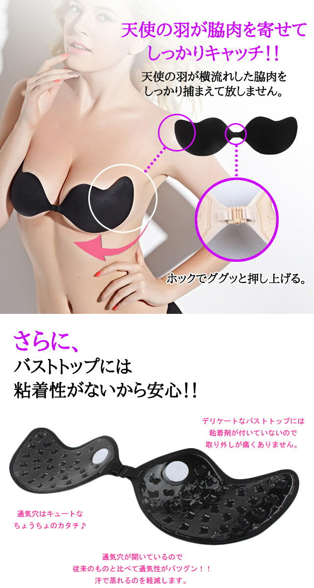 シリコンブラ 天使の羽 ヌードブラ 水着 盛れる 着け心地 軽い インナー 大きいサイズ 通気性 蒸れない メイク 巨乳 バストアップ ベージュ ブラック A B C Dカップ 下着 レディース ブラジャー単品