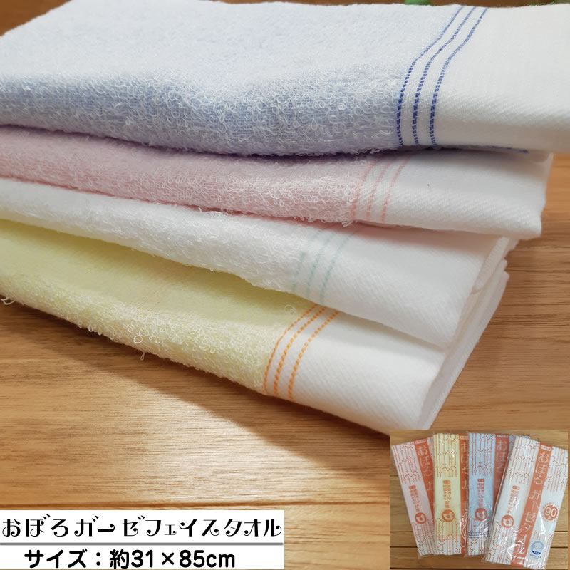 タオル 3枚までネコポス可能 フェイスタオル 34×83cm 日本製 おぼろタオル 綿100% 無地 ピンク ブルー イエロー ホワイト コットン さわやか オールシーズン 洗える 吸水 新生活 丸洗いOK 子供 保育園 国産 ギフト プレゼント おぼろガーゼタオル 薄手